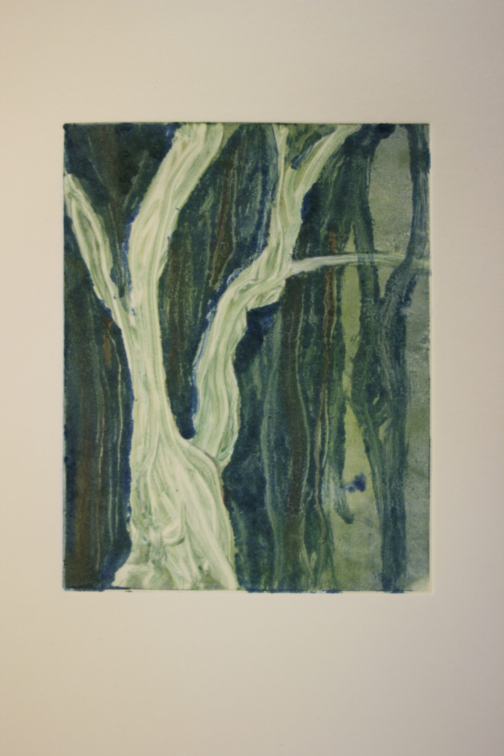 Success! Looking around at her numerous prints pinned onto the wall, it is clear that her work has developed over the semester, both in design and technique. “With most of my prints, I would go back into a print like this one, adding more layers and colors.”