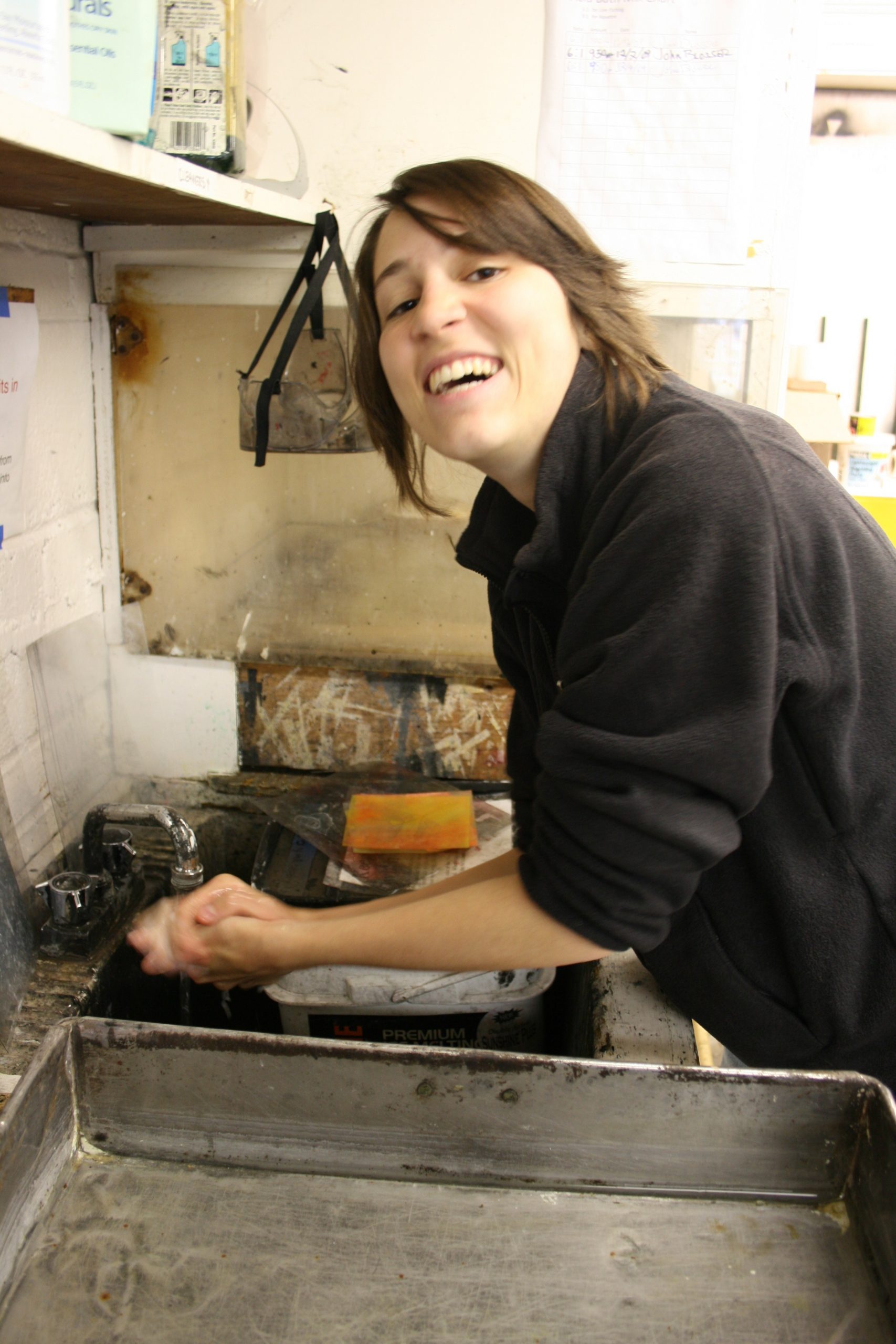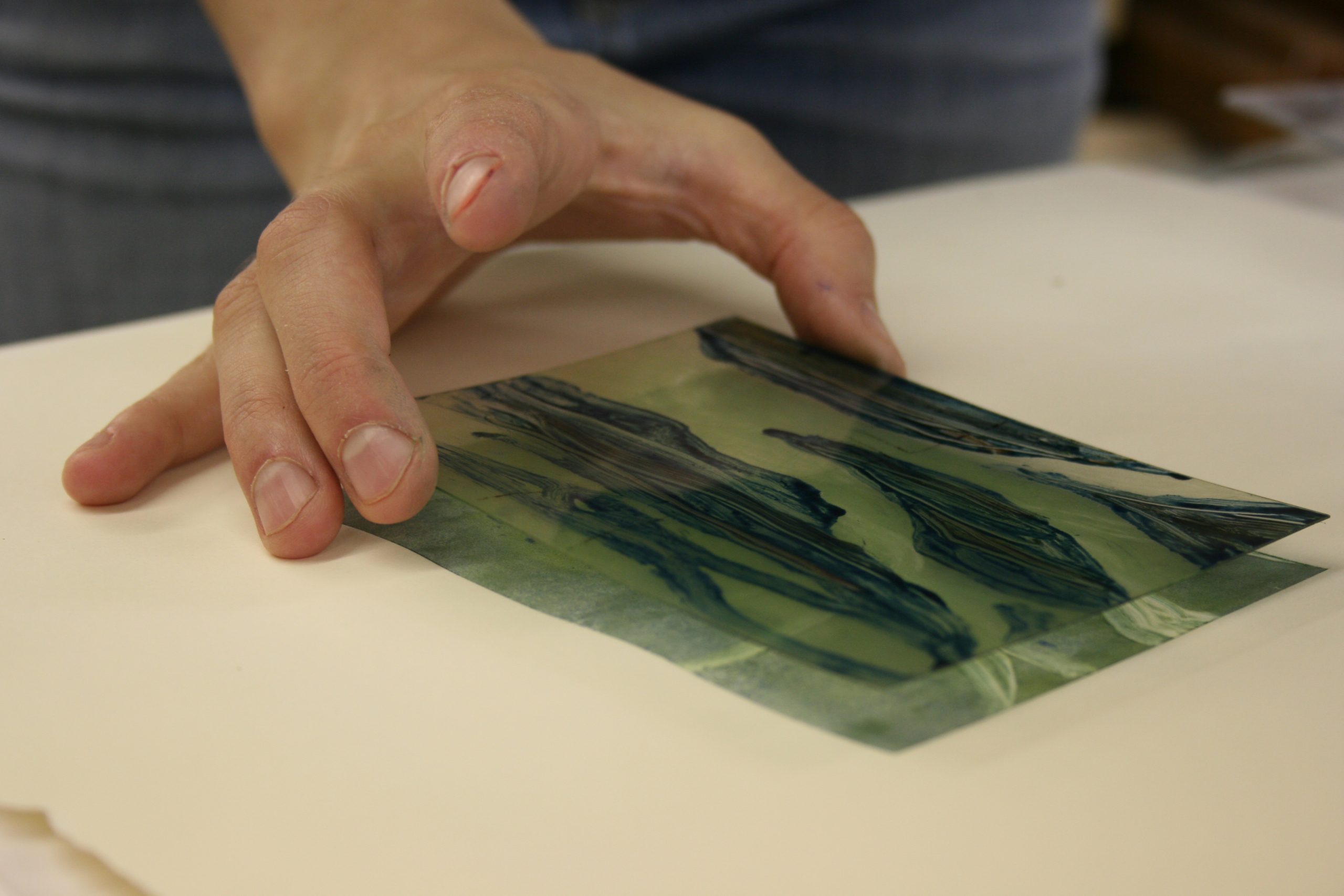 Printmaking requires clean hands in order to prevent messing up the expensive papers. “Lotion is my best friend!” she exclaims.